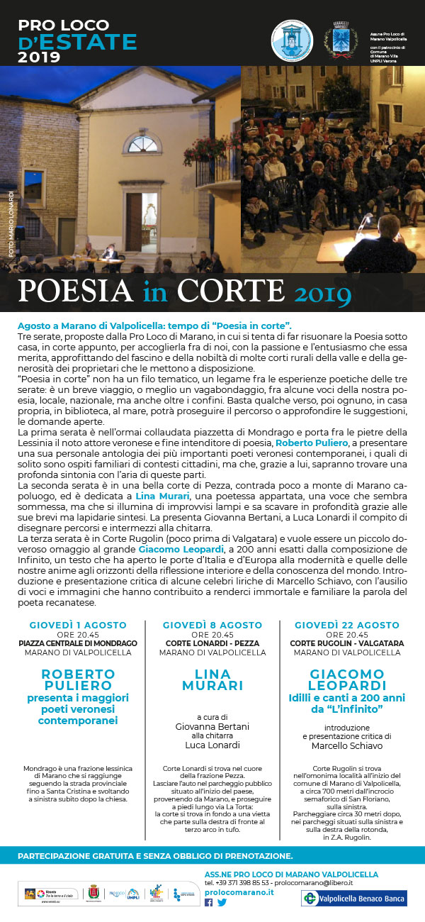 Tre serate, proposte dalla Pro Loco di Marano, in cui si tenta di far risuonare la Poesia sotto