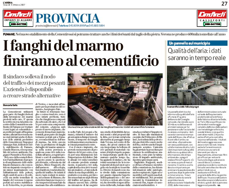 FUMANE. Nel nuovo stabilimento della Cementirossi si potranno trattare