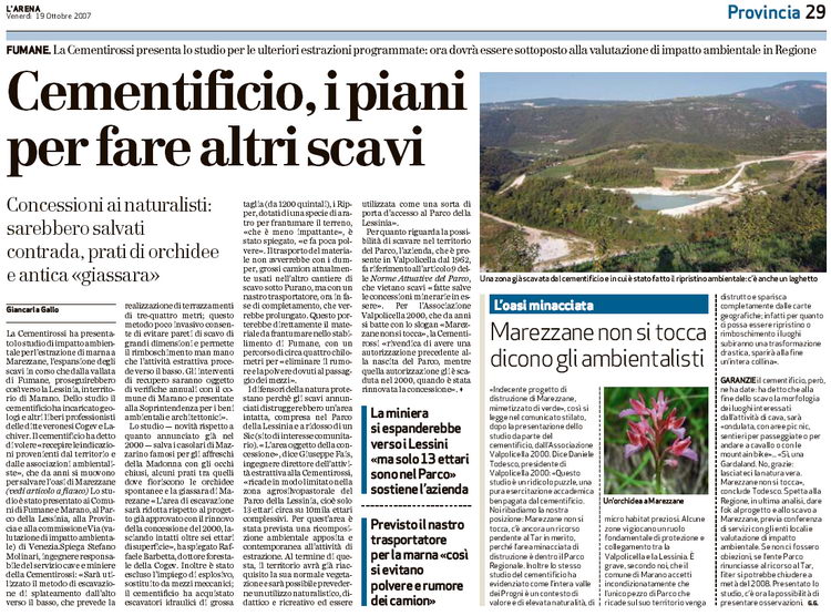 da parte del cementificio, dall’Associazione Valpolicella 2000. Dice