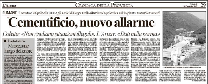 FUMANE. Il comitato Valpolicella 2000 e gli Amici di Beppe Grillo