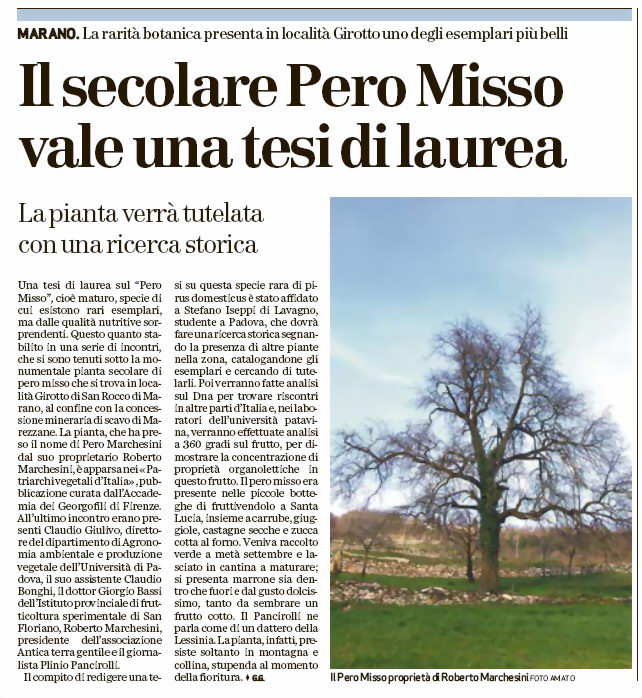 Una tesi di laurea sul “Pero Misso”, cioè maturo, specie di cui esistono