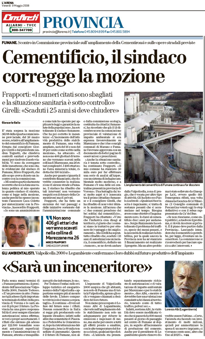 del 26 marzo scorso, relativa all’ampliamento del cementificio di Fumane,