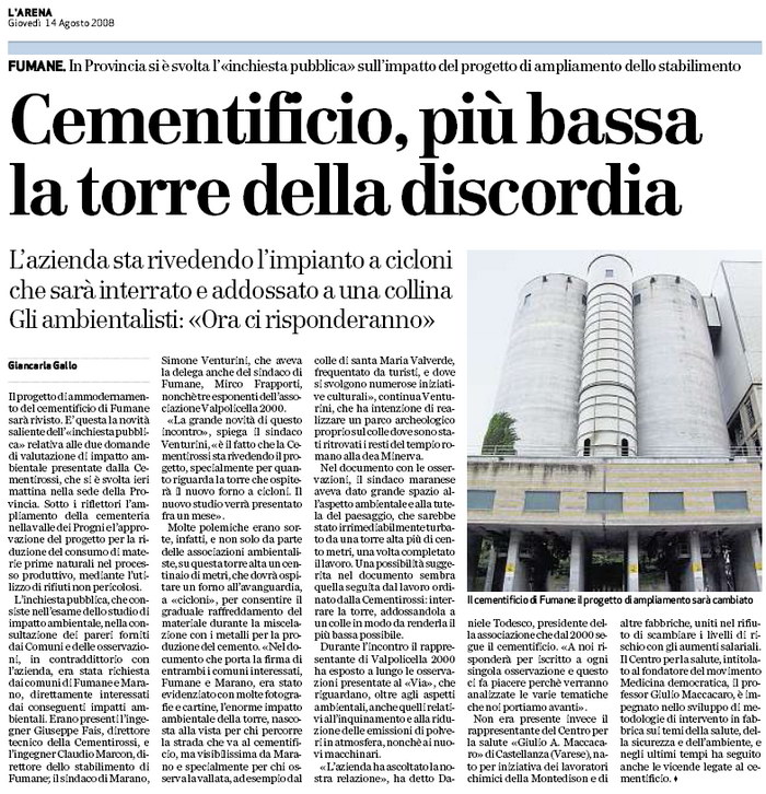 il fatto che la Cementirossi sta rivedendo il progetto, specialmente per