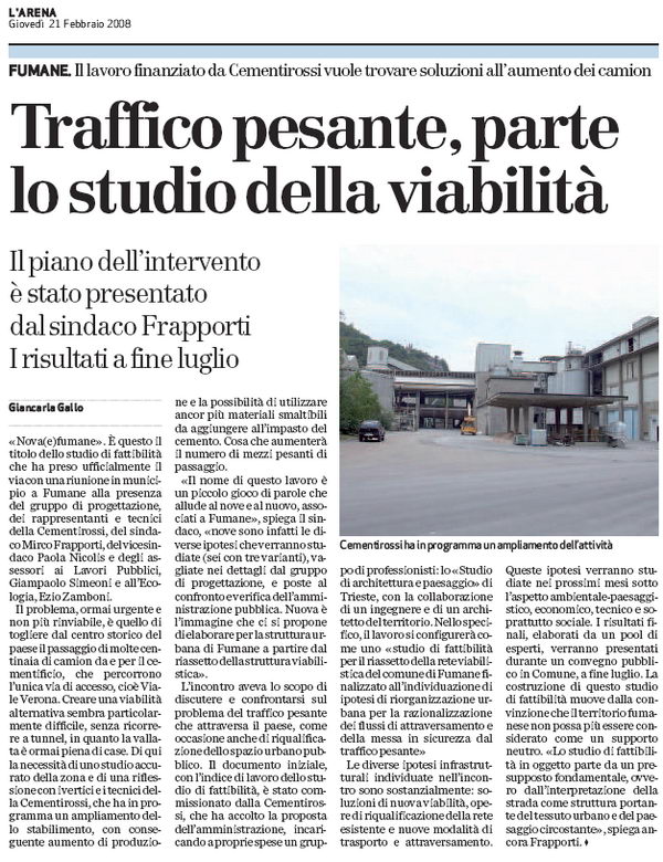 all’impasto del cemento. Cosa che aumenterà il numero di mezzi pesanti di