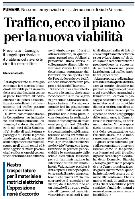 FUMANE. Nessuna tangenziale ma sistemazione di viale Verona