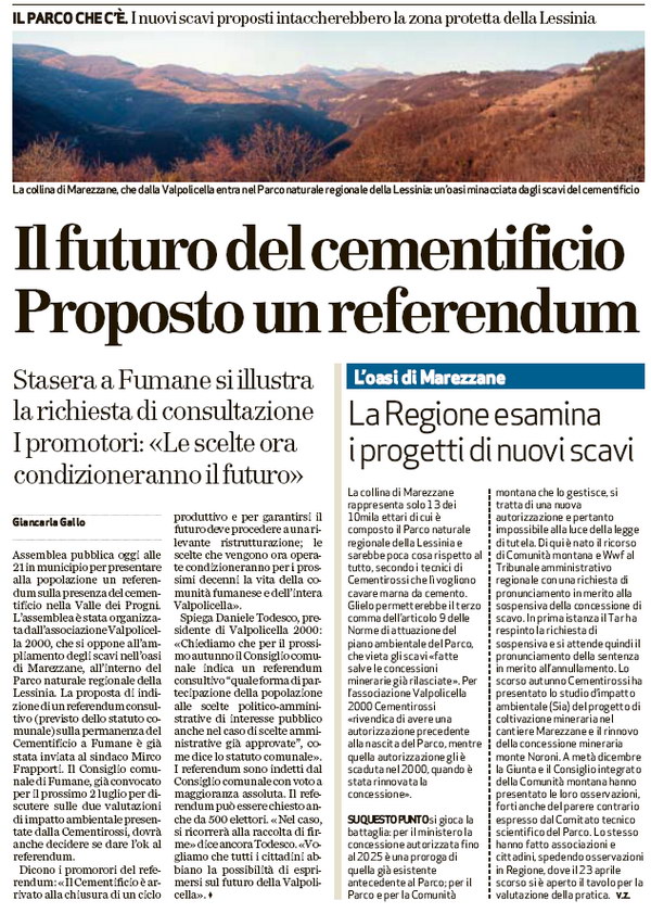 statuto comunale) sulla permanenza del Cementificio a Fumane è già stata