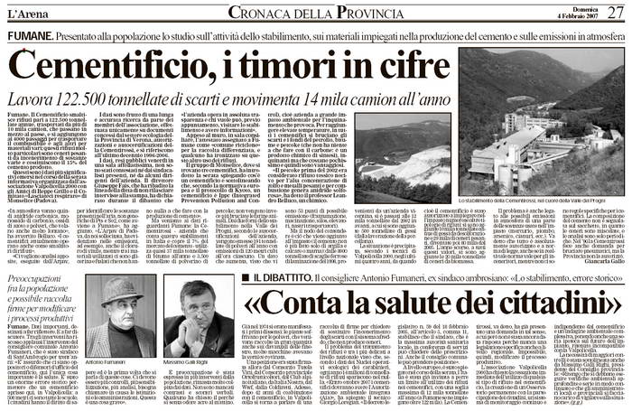 Ma veniamo ai dati riguardanti Fumane: la Cementirossi - azienda che