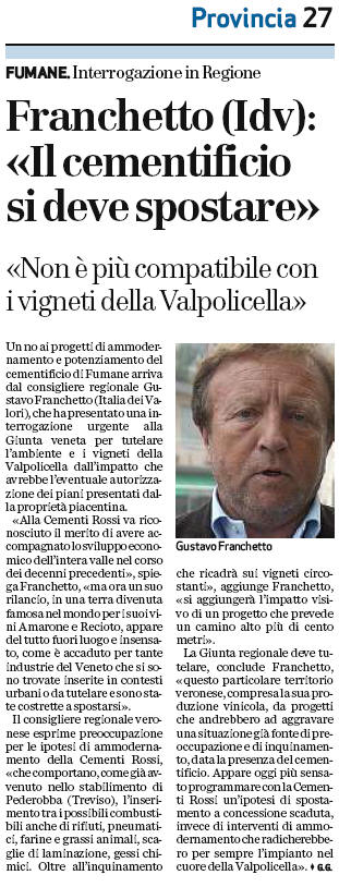 fumane arriva dal consigliere regionale Gustavo Franchetto (Italia dei