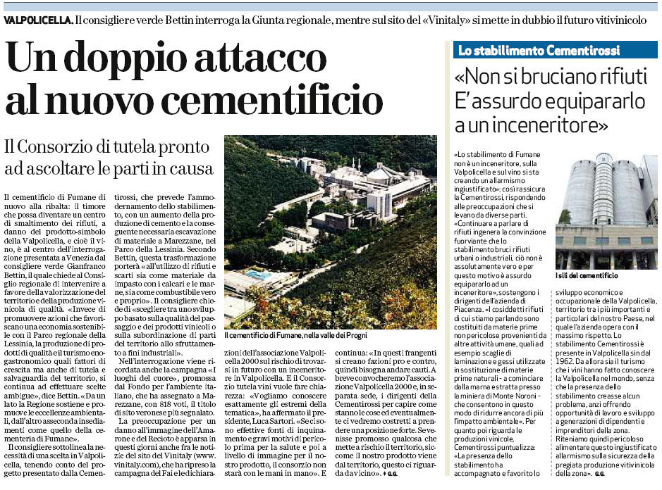 «Lo stabilimento di FUMANE non è un inceneritore, sulla Valpolicella e