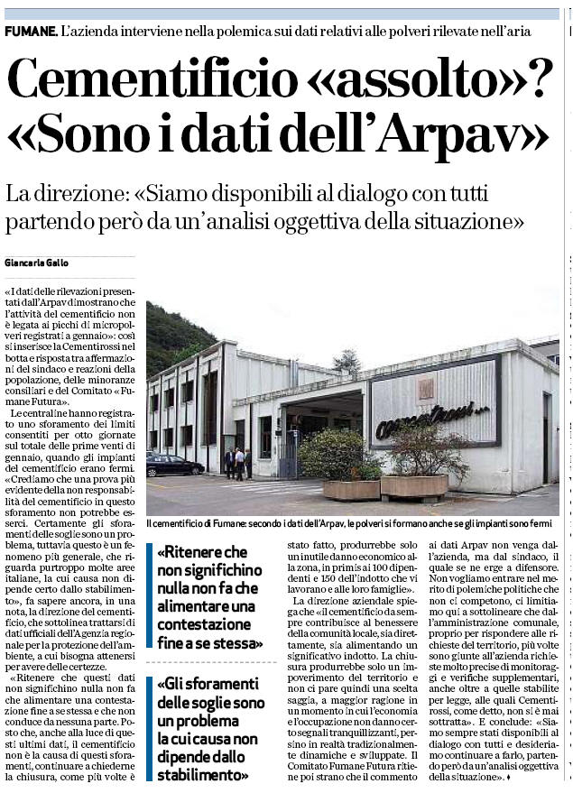 micropolveri registrati a gennaio»: così si inserisce la Cementirossi nel