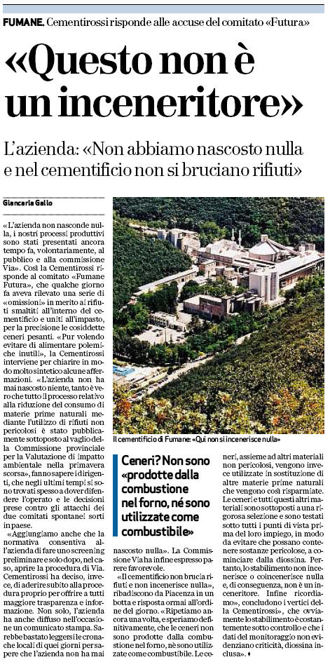 FUMANE. Cementirossi risponde alle accuse del comitato «Futura»