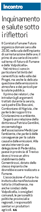 delle conseguenze per la salute causate dalle emissioni. Alla serata