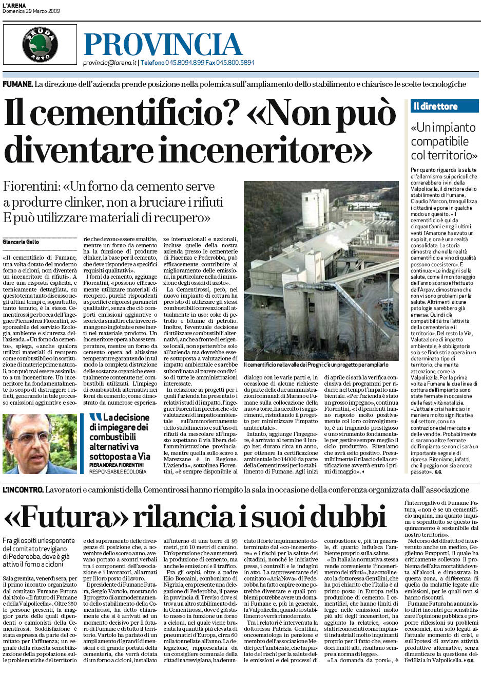 ammodernamento dello stabilimento della Cementirossi, ha detto chiaramente