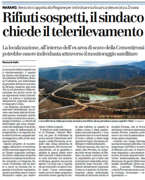 Venturini, per individuare la presunta discarica in località Ziviana,