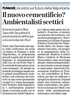 l'Associazione AriaNova di Treviso, sul cementificio di Pederobba, per