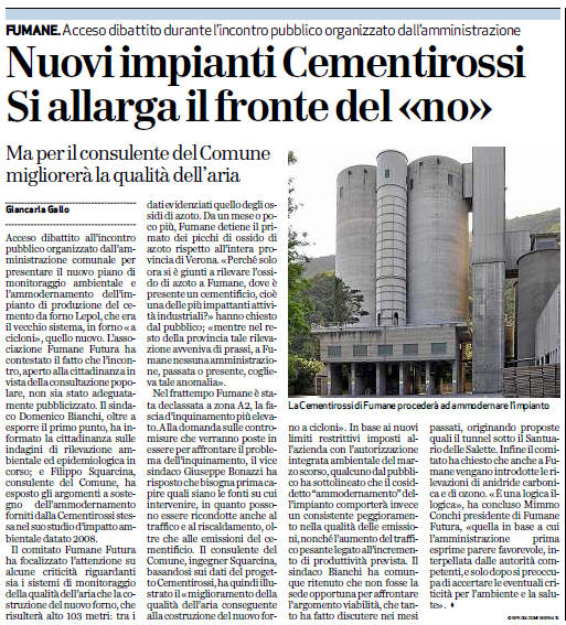 cementificio. Il consulente del Comune, ingegner Squarcina, basandosi