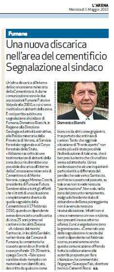 Comune di Fumane, la cementeria ha scavato aprendo un fronte di scavo