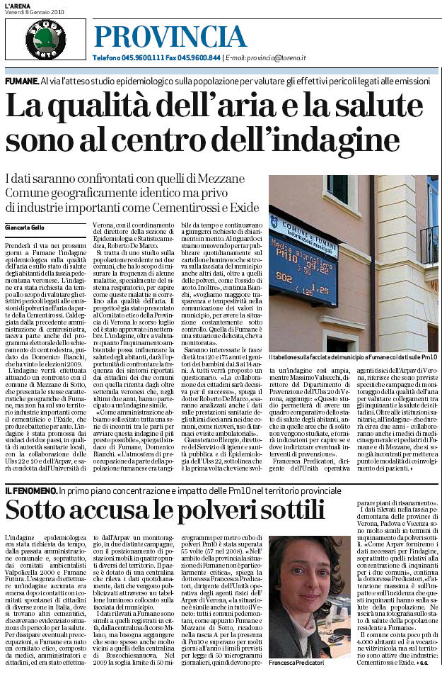 Pm10Prenderà il via nei prossimi giorni a Fumane l'indagine