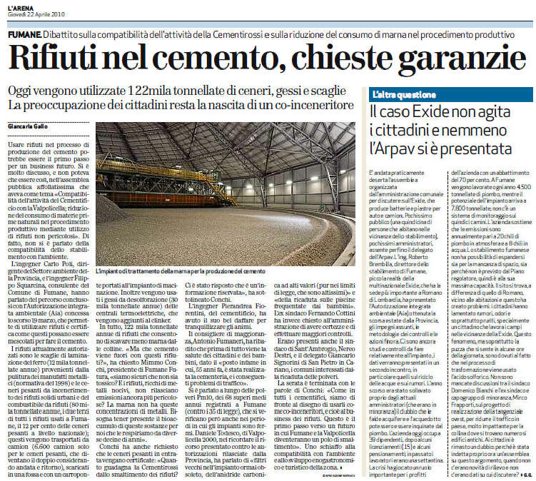 tema «Compatibilità dell'attività del Cementificio con la Valpolicella;