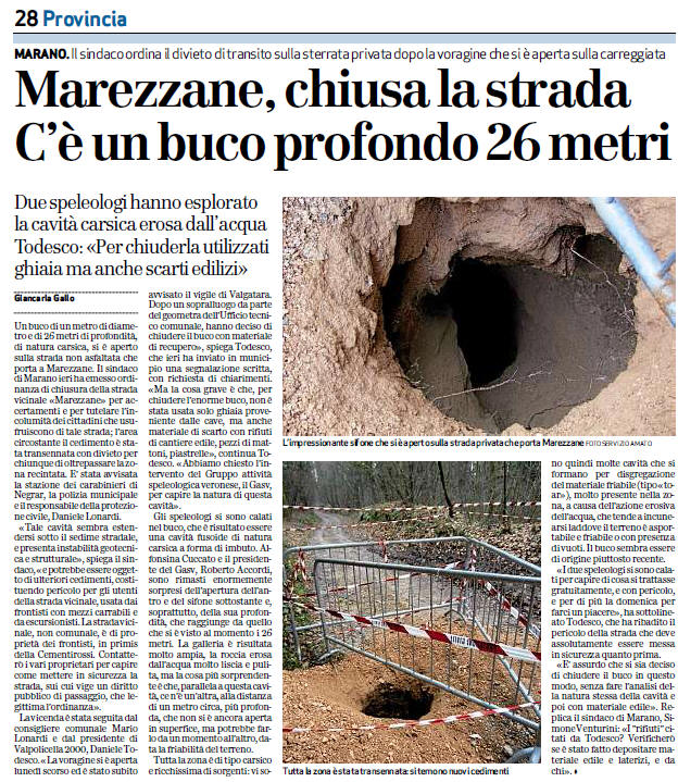 presidente di Valpolicella 2000, Daniele Todesco. «La voragine si è