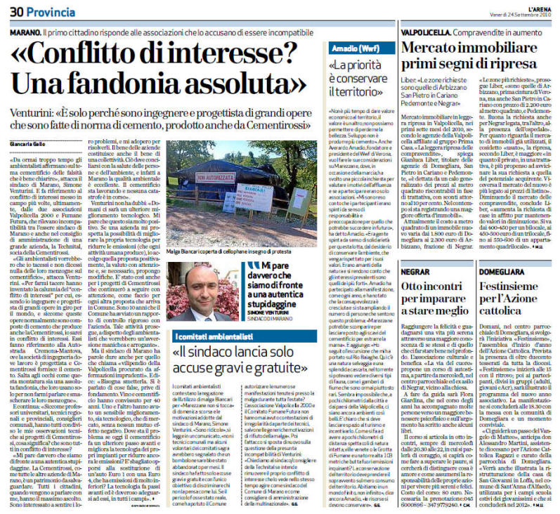 Venturini. E fa riferimento al conflitto di interessi messo in campo più
