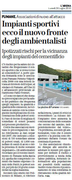 di Fumane, all’Ulss 22 e all’assessore provinciale all’ambiente