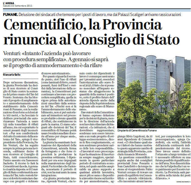 L´impianto di Cementirossi a FumaneDopo un'accesa discussione, la giunta
