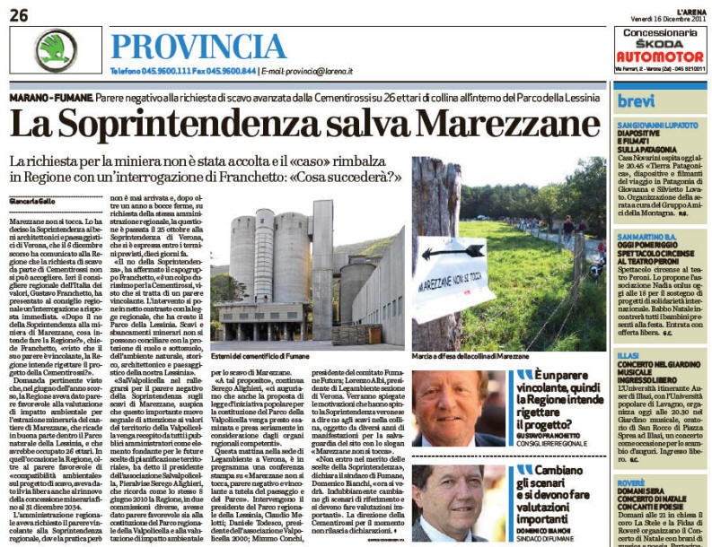 stampa su «Marezzane non si tocca, parere negativo e vincolante a tutela del