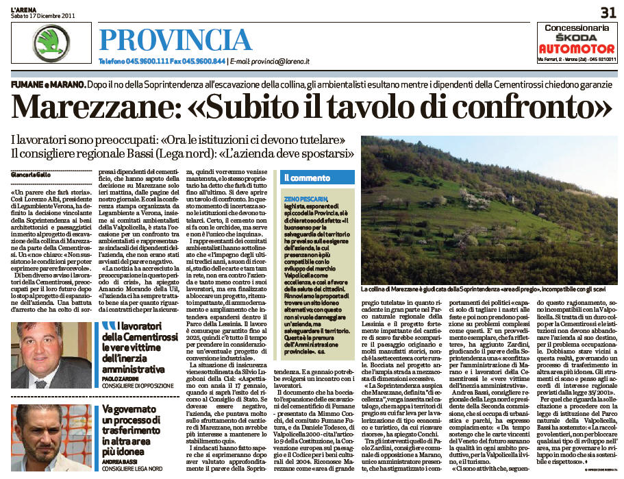saputo della decisione su Marezzane solo ieri mattina, dalle pagine del nostro