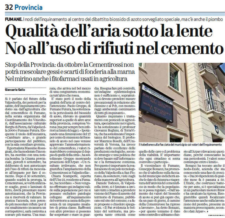 FUMANE. I nodi dell'inquinamento al centro del dibattito: biossido di