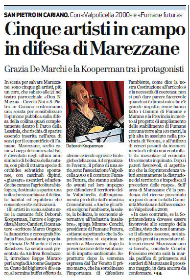 Deborah KoopermanIn scena per salvare Marezzane: sono cinque gli artisti, più un