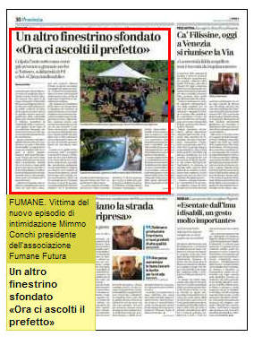 FUMANE. Vittima del nuovo episodio di intimidazione Mimmo Conchi