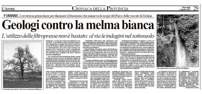 «Il verificarsi del fenomeno delle acque bianche nelle cascate di Molina
